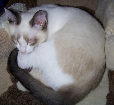 He also sleeps curled up, somehow tucking his long legs underneath him. Even the white tip of his tail, from which he got his name, is hidden. | ||||||||||||||||||